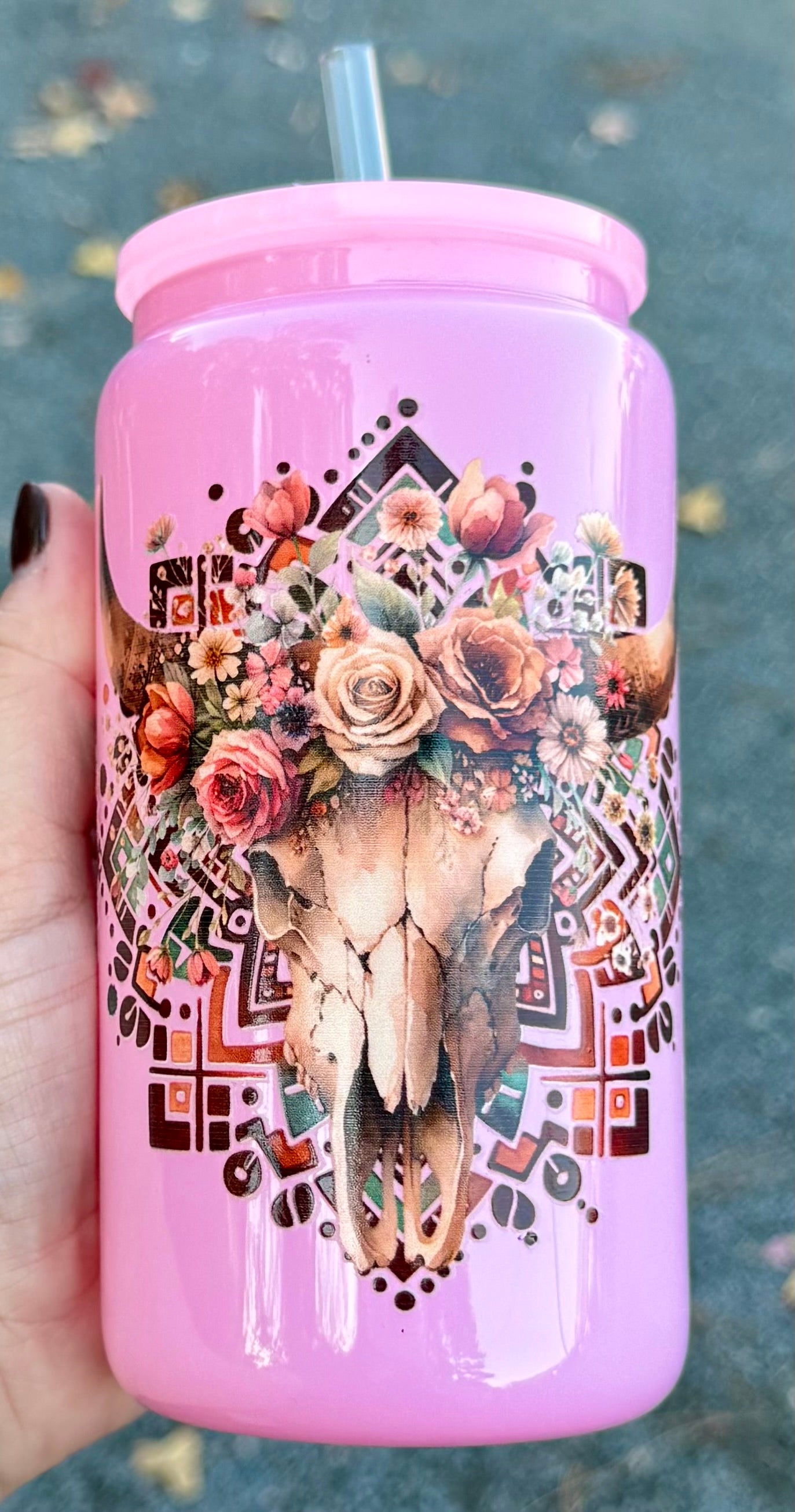 16oz glass can cup with lid and straw